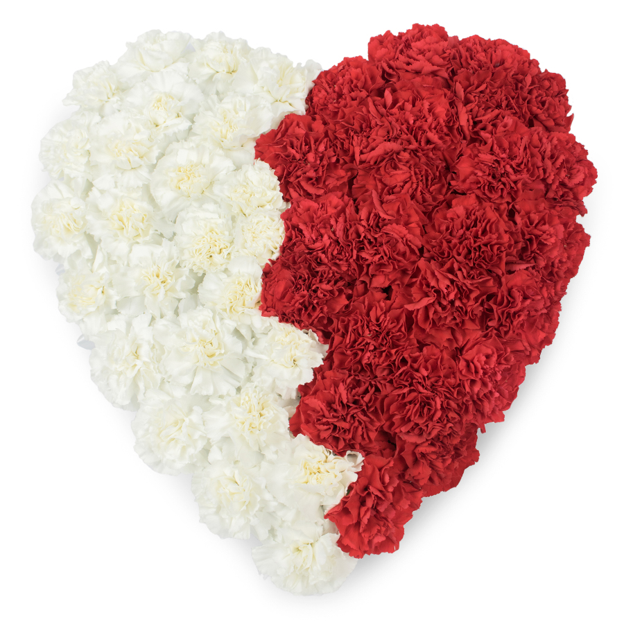 Celebrate the beauty and sophistication of our Delightful Carnation Heart Bouquet, thoughtfully arranged by Handy Flowers. This charming bouquet combines white and red carnations, making it an ideal choice for expressing sympathy or conveying love.